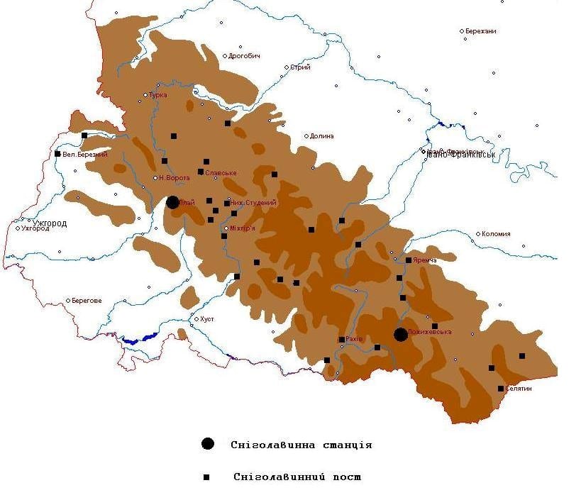 Рис.1 Карта сніголавинних станцій та постів у Карпатах