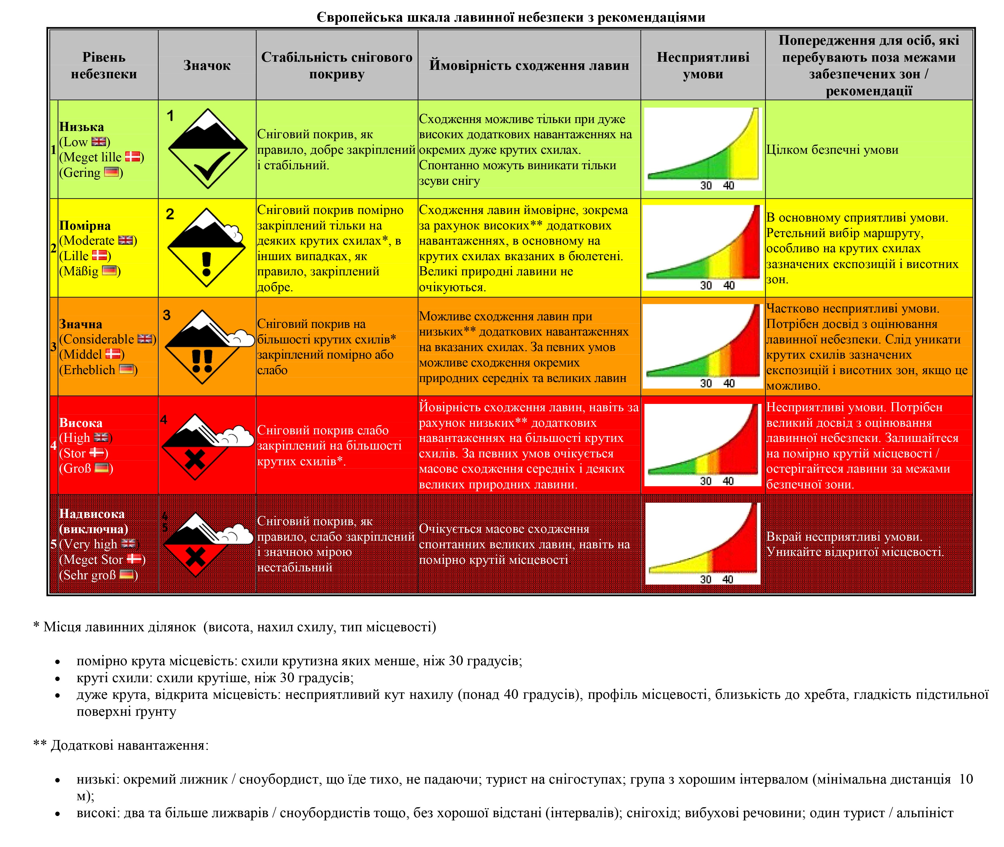Рис.2 Європейська шкала рівнів лавинної небезпеки